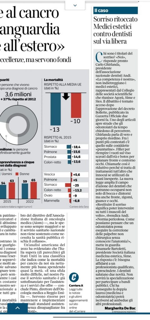 Come riportato nell’articolo del Corriere della Sera del 1° giugno u.s., il Presidente ANDI, plaude all’approvazione del Decreto Legge che ha confermato la competenza degli odontoiatri per determinati distretti del volto e definisce “un vero e proprio riordino”, il testo della legge.