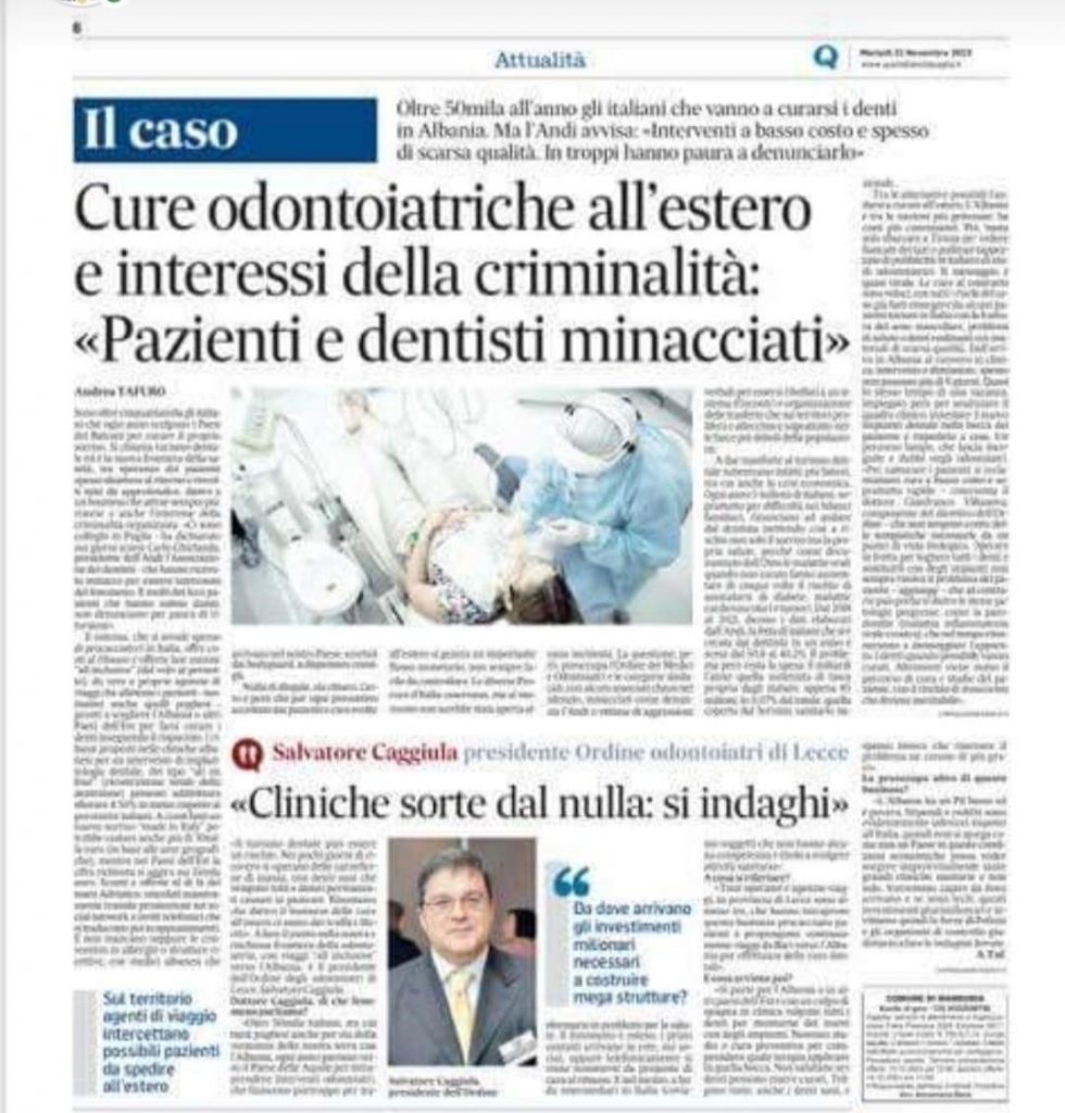 Quotidiano di Puglia – Cure odontoiatriche all’estero e interessi della criminalità: «Pazienti e dentisti minacciati»